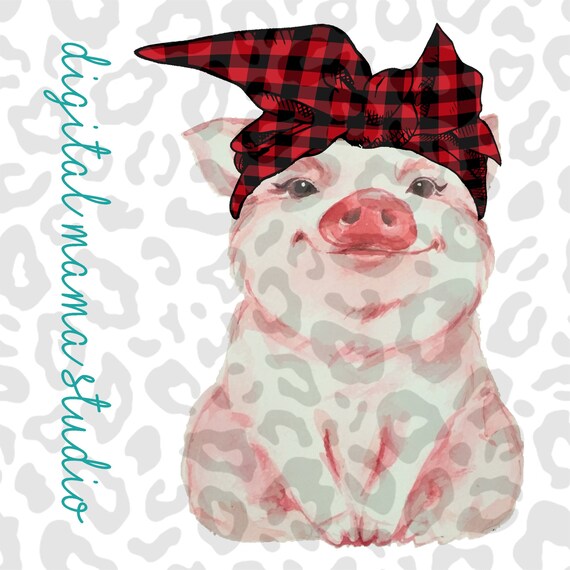 Buffalo Plaid Bow On Watercolor Pig Sublimation Design Etsy