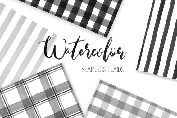 16 Watercolor Buffalo Plaid Black Gray And White Digital Etsy