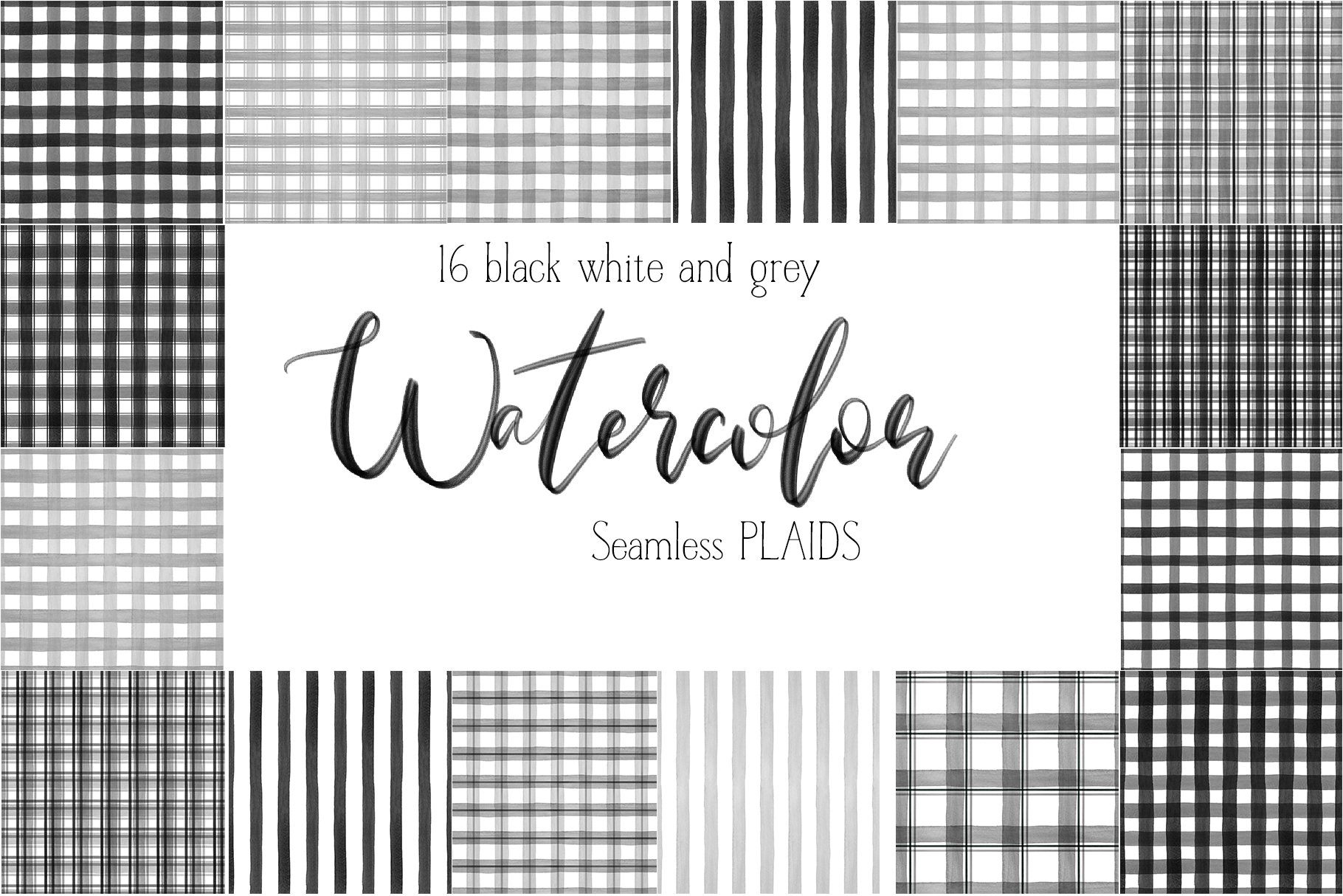 16 Watercolor Buffalo Plaid Black Gray White Patterns Patterns Design Bundles