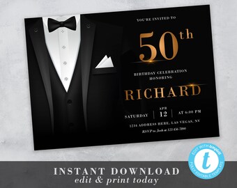 Tuxedo Invitation 50th Birthday Invitations Instant Etsy Invitation Template Groomsmen Invitation 50th Birthday Invitations