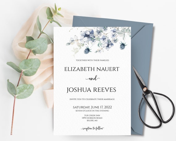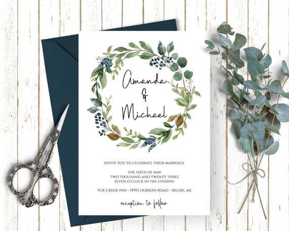 Blue Greenery Wedding Invitation Wedding Invitation Template Editable Printable File Instant Download Wi270 By Coastal Cottage Prints Catch My Party