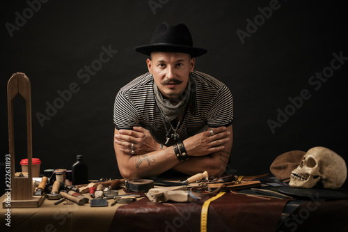 Leather Craftmans At His Workshop Pieces Of Leather And Scobbler Working Tools On Table Small Business Cobblering Leather Workcraft Buy This Stock Photo And Explore Similar Images At Adobe Stock