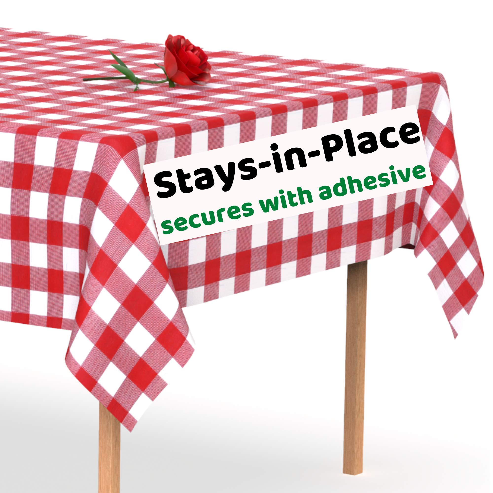 Amazon Com Stay In Place Red Checkered Plastic Tablecloth Secures With Adhesive Windproof Disposable Tablecloths 5 Pack 54 X 108 Inch Checkered Table Cover Picnic Table Cloth Swanoo Kitchen Dining