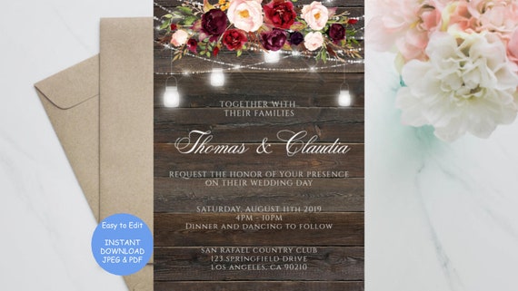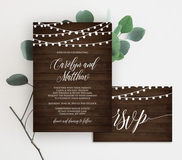 Wedding Invitation Template Printable Rustic Wood String Lights Invite Set Rsvp Details Diy Instant Download Editable Pdf File Weddbook