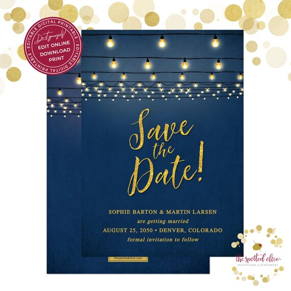 String Lights Save The Date Editable Digital Printable Template Edit Print Yourself Please Read Item Details By The Spotted Olive Catch My Party