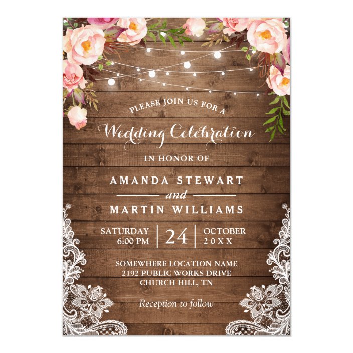 Rustic Country String Lights Floral Lace Wedding Invitation Zazzle Com