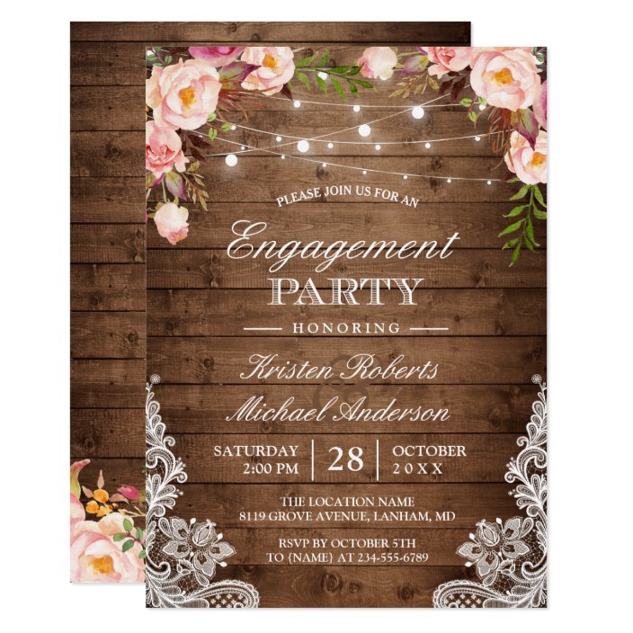 Rustic Floral Lace String Lights Engagement Party Invitation Zazzle Com