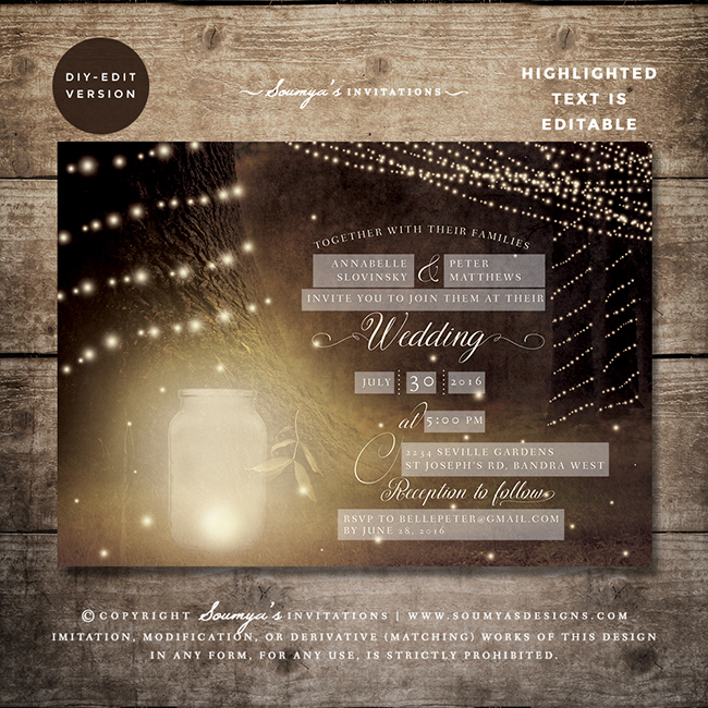 Enchanted Forest Wedding Invitation Rustic Woodland Wedding Invitation String Lights Wedding Invitation Fairy Lights Wedding Invitation Mason Jar Fireflies Wedding Invitation Soumya S Designs