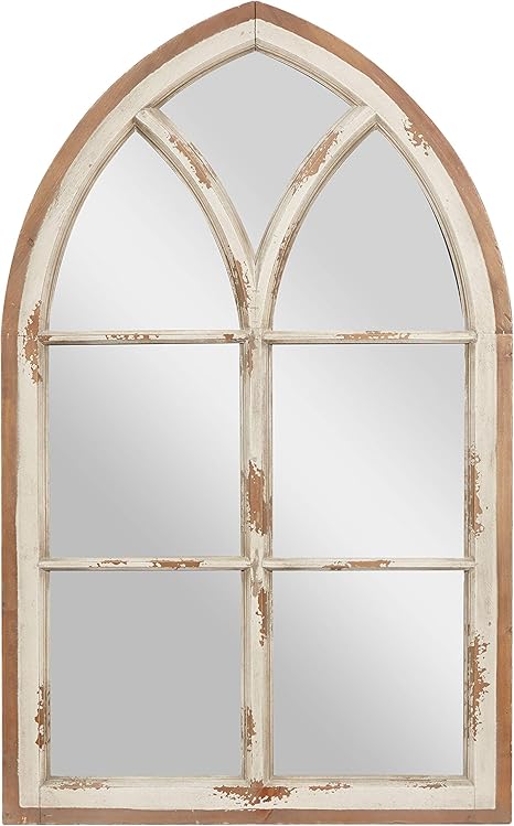 Amazon Com Unknown1 Large Distressed White Wood Arched Wall Mirror W Window Frame 32 X 2 51 Vintage Home Kitchen