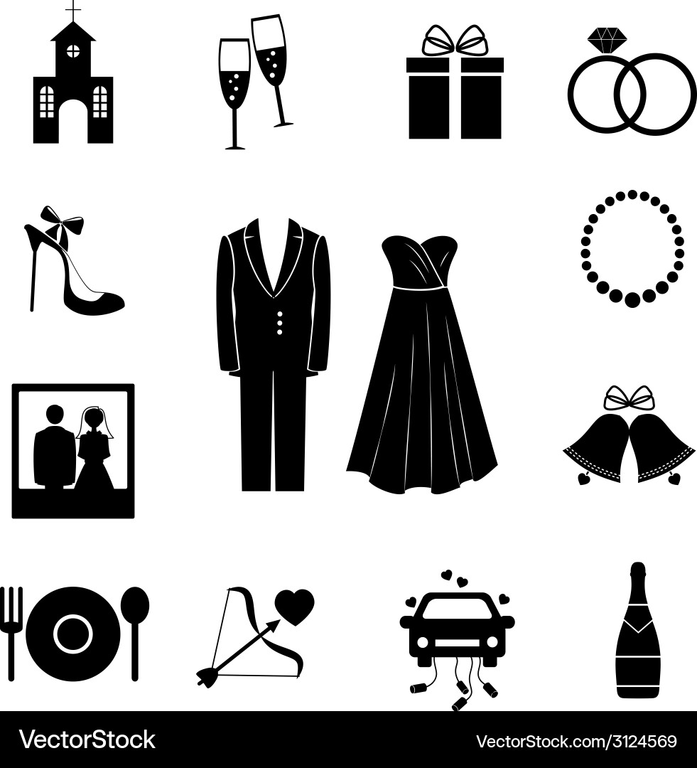Bridal Vector Symbols Wedding Vector Black Silhouette Icons Isolated On White Collection Of Wedding Icons Black Silhouette Canstock