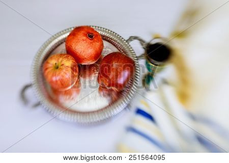Jewish Holiday Tallit Apples And Pomegranate Rosh Hashana Hebrew Religious Holiday Stock Images Page Everypixel