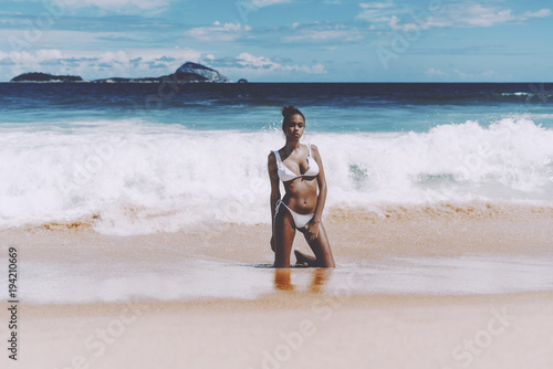 Adorable Young Brazilian Girl In White Swimming Suit Is Standing Stock Photo Picture And Royalty Free Image Image