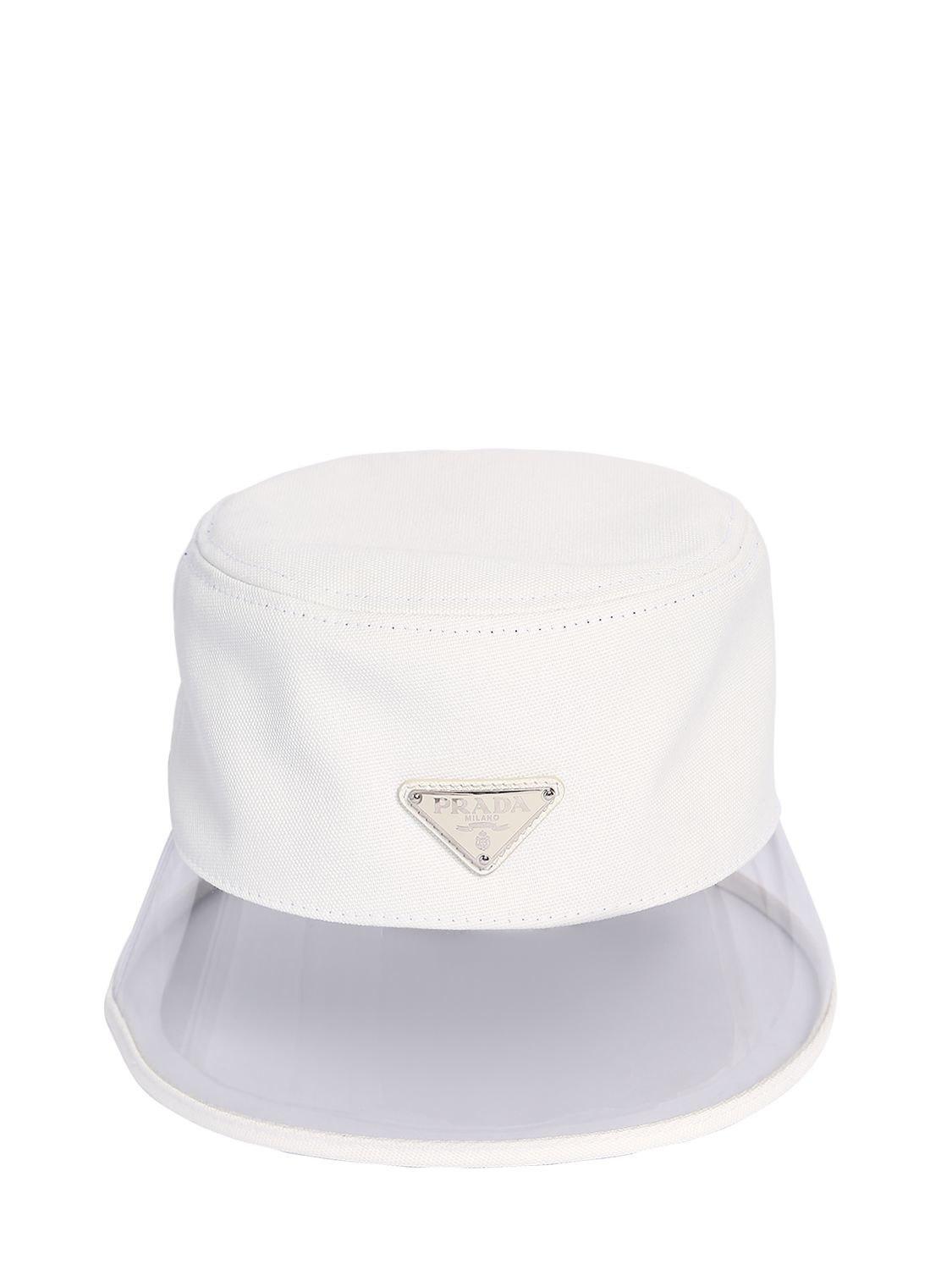 Prada Cotton Plexi Bucket Hat W Logo In White Lyst