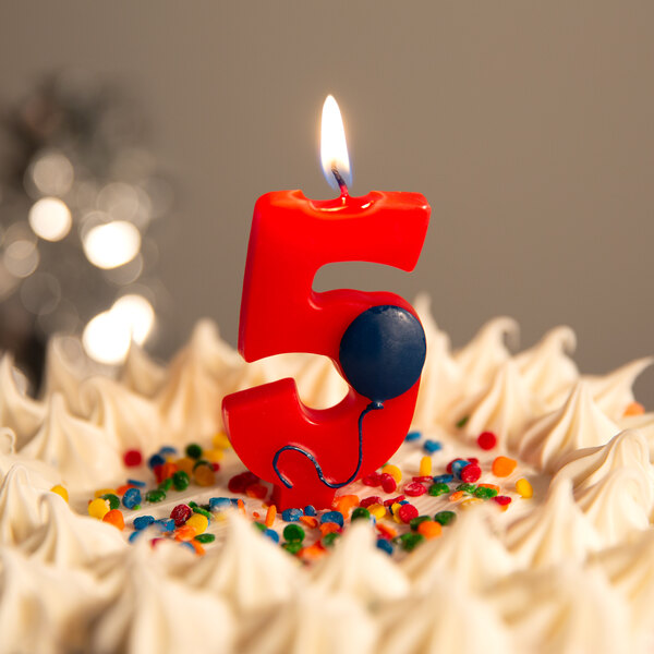 Creative Converting 1045 3 Red 5 Birthday Candle With Blue Balloon