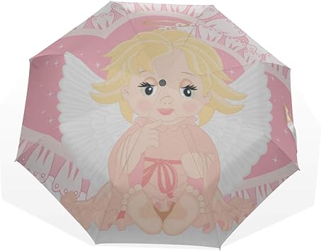 Amazon Com Travel Umbrella Cute Little Girl With Butterfly Wings Anti Uv Compact 3 Fold Art Lightweight Foldable Umbrellas Outside Printing Windproof Rain Sun Protection Umbrellas For Women Girls Kids
