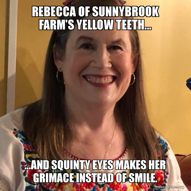 Rebecca Of Sunnybrook Farm S Yellow Teeth And Squinty Eyes Makes Her Grimace Instead Of Smile Make A Meme