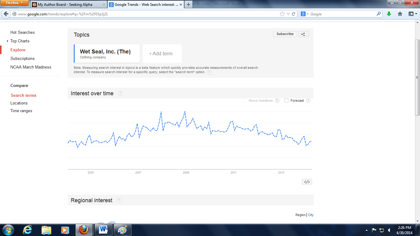Wet Seal Substantial Upside Stock Has Been Sold Off On Emotion Nasdaq Wtsl Seeking Alpha
