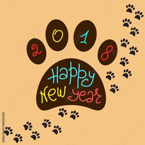 Greeting Card Happy New Year The Imprint Of Dog Paws And A Handwritten Inscription Holiday Vector Illustration Of The Year Yellow Dog Graphic Design For Banner Poster Card Cover Invitation Buy
