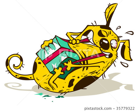 Fun Yellow Dog Opens Tear Gift Box Stock Illustration
