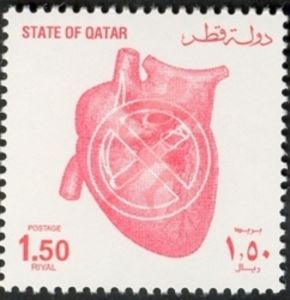 Stamp Heart And No Smoking Sign On Running Man Qatar World Day Against Smoking Mi Qa 1215 Yt Qa 851 Sg Qa 1125