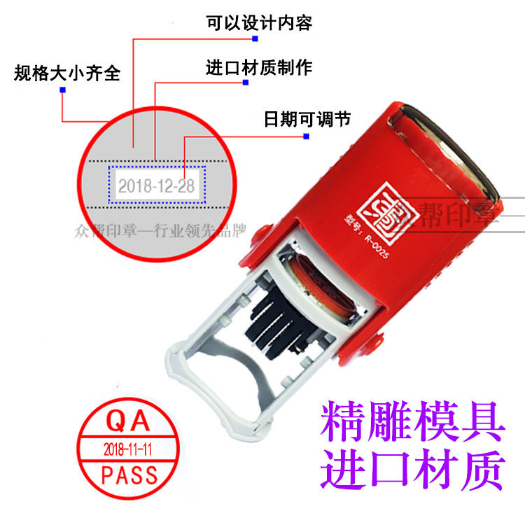Adjustable Date Seal Back Ink Seal Qc Pass Qa Iqc Inspection Qualified Production Name Stamp Automatically Flipped