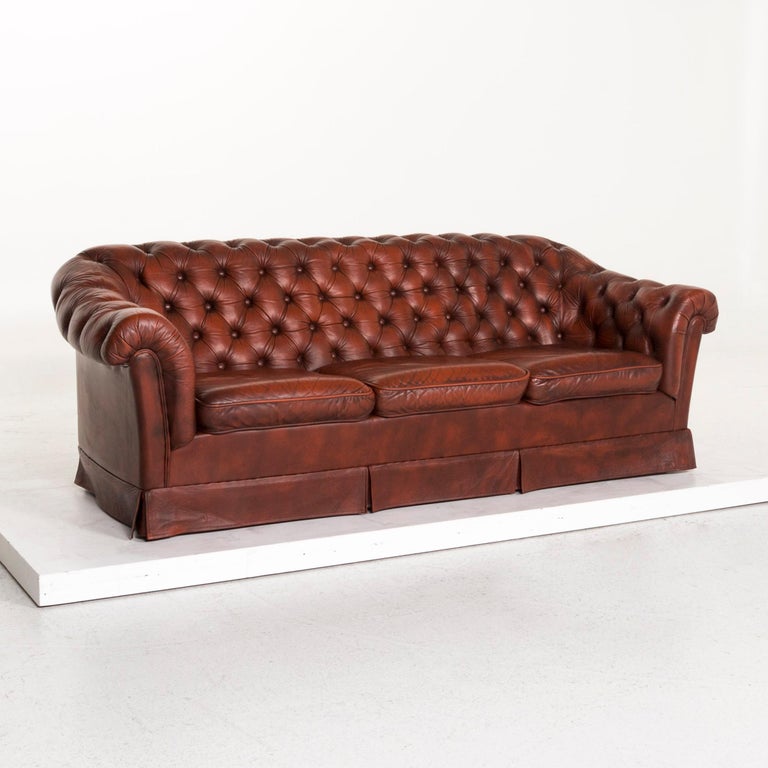 Chesterfield Leather Sofa Red Three Seat Retro Vintage Couch For Sale At 1stdibs
