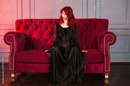 Images Of Beautiful Glamorous Girl On The Retro Red Couch And Wa Stock Photo C Qeweqewere