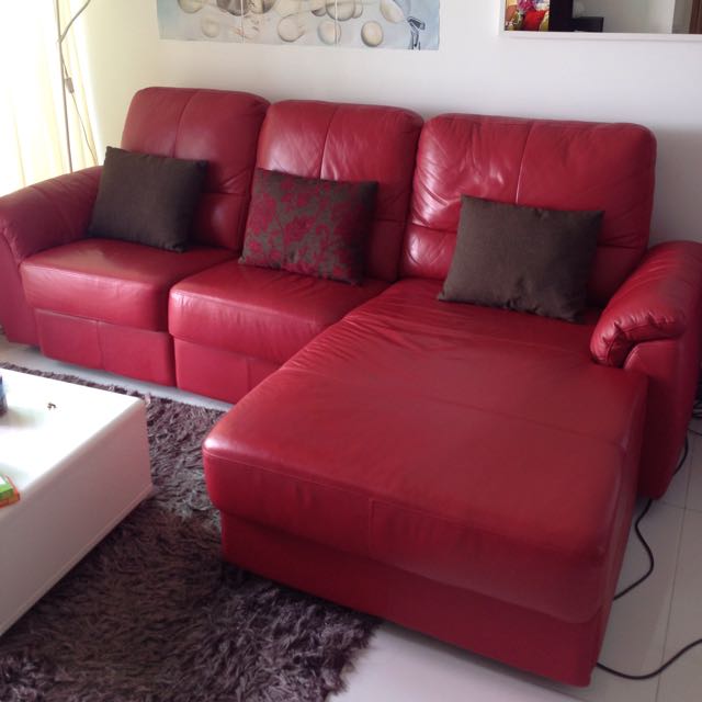 Retro Red Sofa With Chaise And Recliner Furniture On Carousell