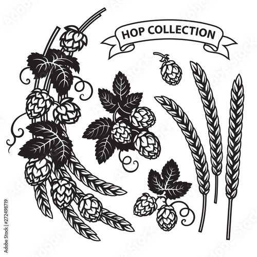 Black Illustration Of Hop And Barley Ear For Brewing Royalty Free Cliparts Vectors And Stock Illustration Image