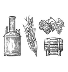 Hops And Barley Malt Beer Engraved Vintage Set Vector Image