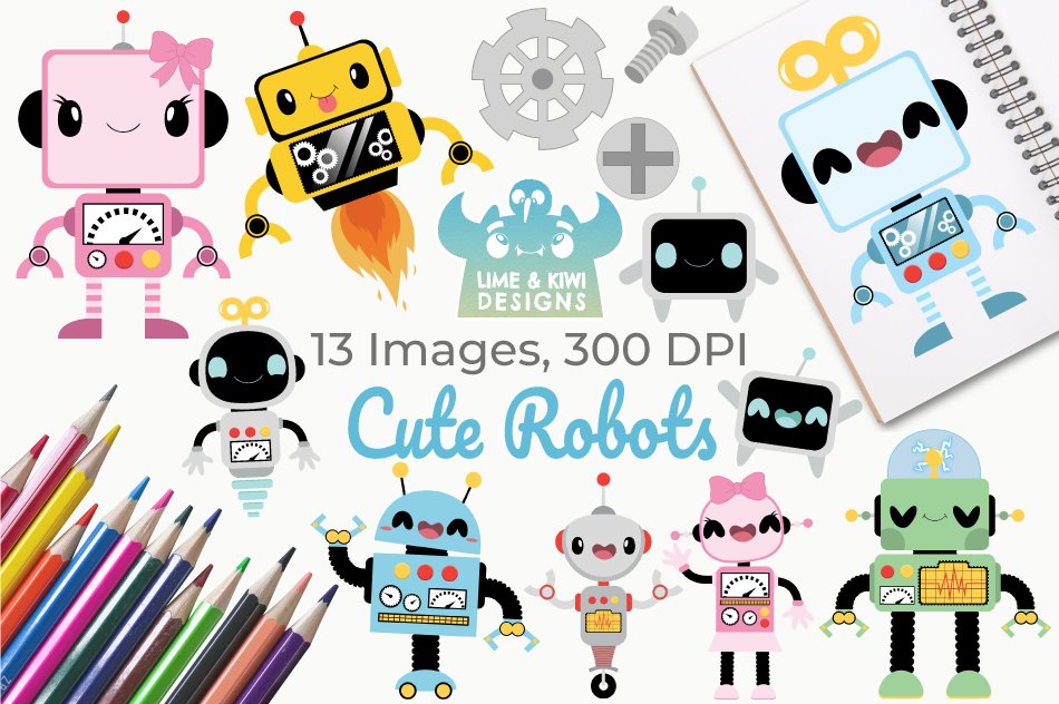 Cute Robot Clipart Instant Download Vector Art Illustrations Design Bundles