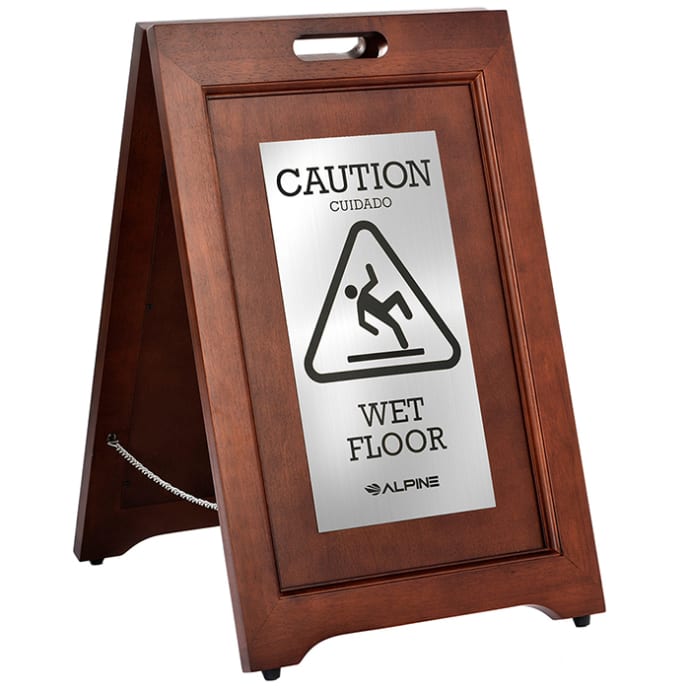 Alpine Industries 2 Sided Wooden Stainless Steel Plated Wet Floor Sign A Frame Warning Notice Sturdy Double Sided Fold Out Bilingual Floor Safety Alert Ideal For High End Commercial Use Buy Online