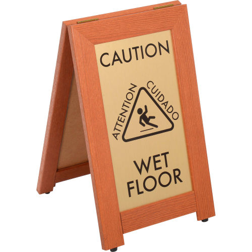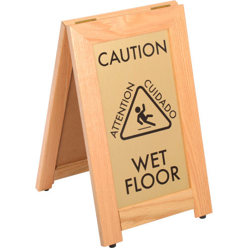 Rubbermaid Executive Multi Lingual Caution Sign 2 Sided Wood Gold