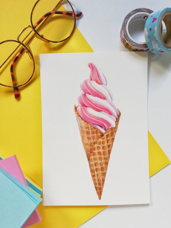 Strawberry Swirl Ice Cream Food Illustration Print Etsy