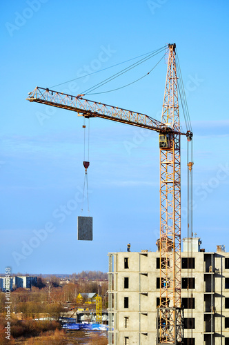 Tall Crane During The Moving Of Concrete Slab Suspended On Building Slings View From Height Buy This Stock Photo And Explore Similar Images At Adobe Stock Adobe Stock