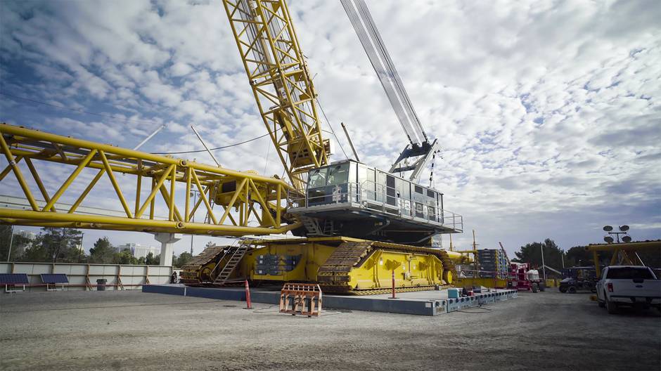 580 Foot Tall Crane Arrives At Msg Sphere Site In Las Vegas Youtube