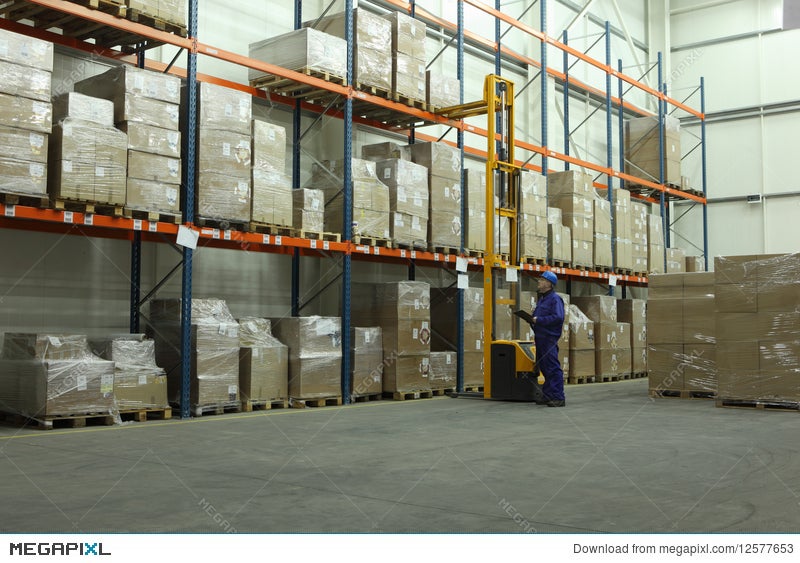 Worker Counting Stocks In Warehouse Stock Photo Megapixl
