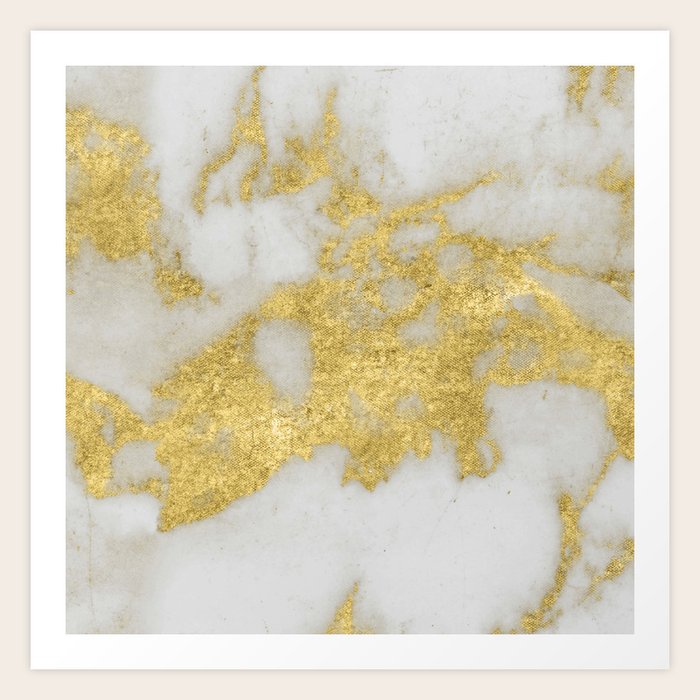 Marble Yellow Gold Marble Foil On White Pattern Art Print By Naturemagick Society6
