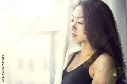 A Young Korean Girl Looks Out The Window Beautiful Woman Enjoys The Morning Wake Up Early In The Morning And Meet The Dawn Start Life Anew Look Into The Future Buy