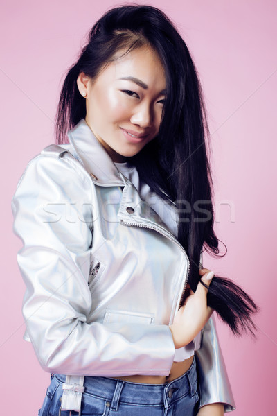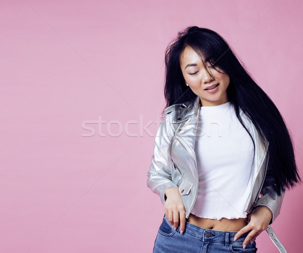 Young Pretty Smiling Asian Korean Girl Wearing Modern Fashion Clothers On Pink Background Lifestyle Stock Photo C Iordani 724 Stockfresh