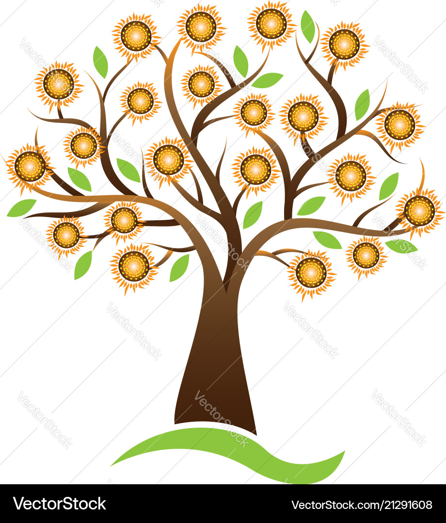 Tree Sunflower Logo Design Royalty Free Vector Image