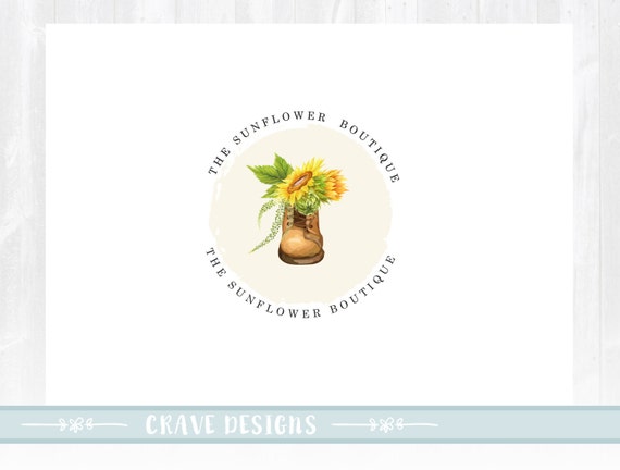 Floral Logo Design Sunflower Logo Decor Logo Rustic Logo Etsy
