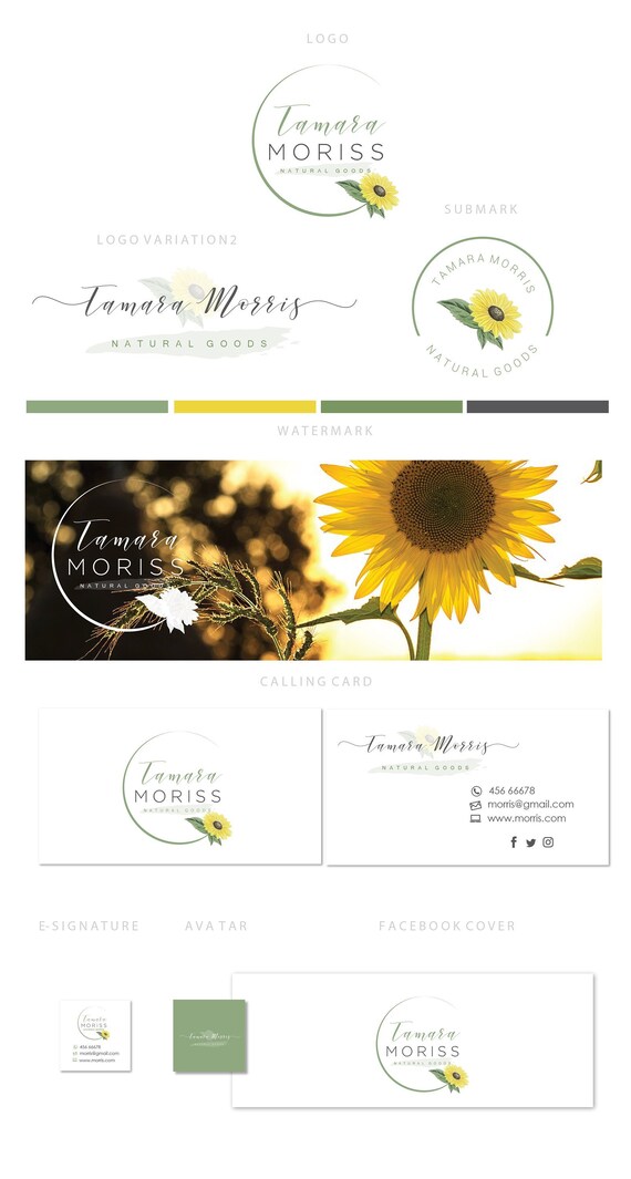 Branding Kit Logo Design Sunflower Branding Sunflower Etsy