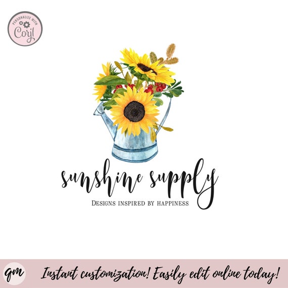 Editable Sunflower Logo Custom Sunflower In Watering Can Logo Etsy