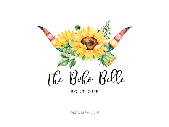 Boho Floral Logo Horns Logo Sunflower Logo Rustic Logo Etsy Etsy