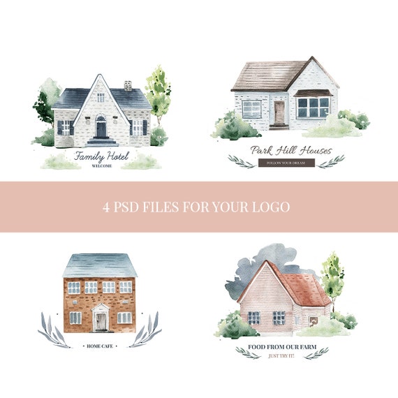 Watercolor Logo With Houses Logo Design Logo Template Etsy