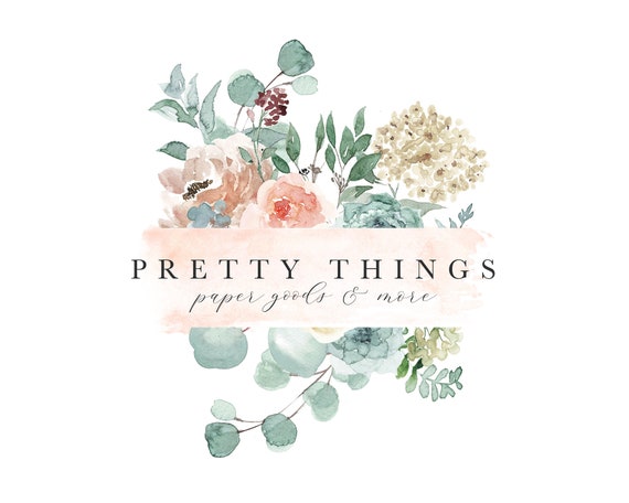 Premade Logo Template Floral Watercolor Logo Greenery Logo Etsy