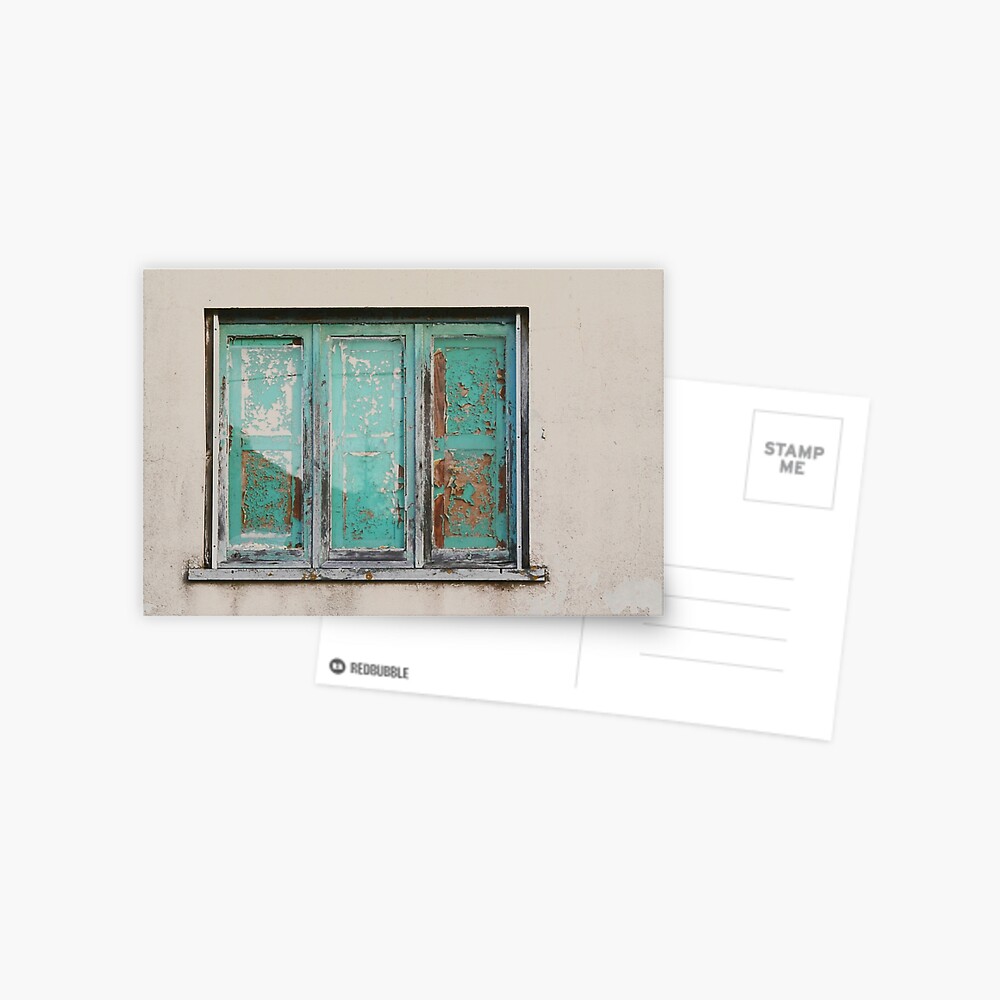 Window With Turquoise Blinds Greeting Card By Oknoki Redbubble