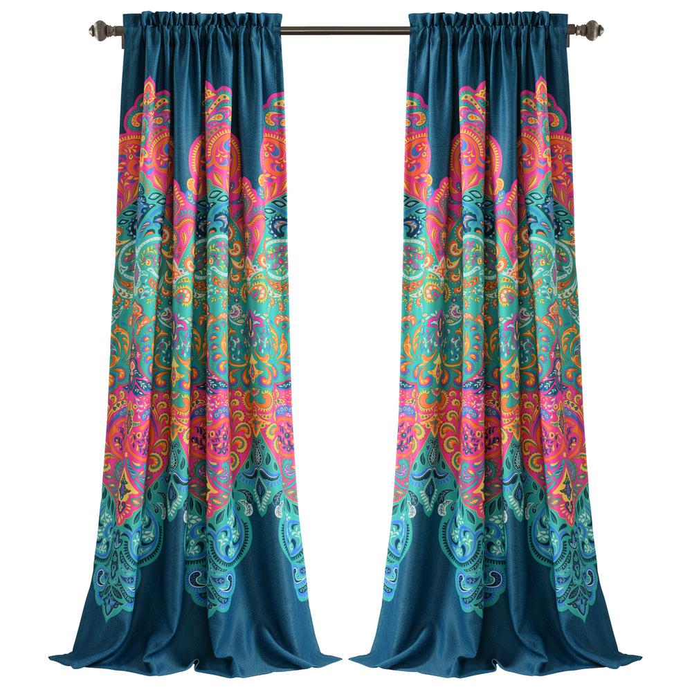 Lush Decor Boho Chic Room Darkening Window Curtain Panels Turquoise Navy 52x84 2 Set 16t The Home Depot