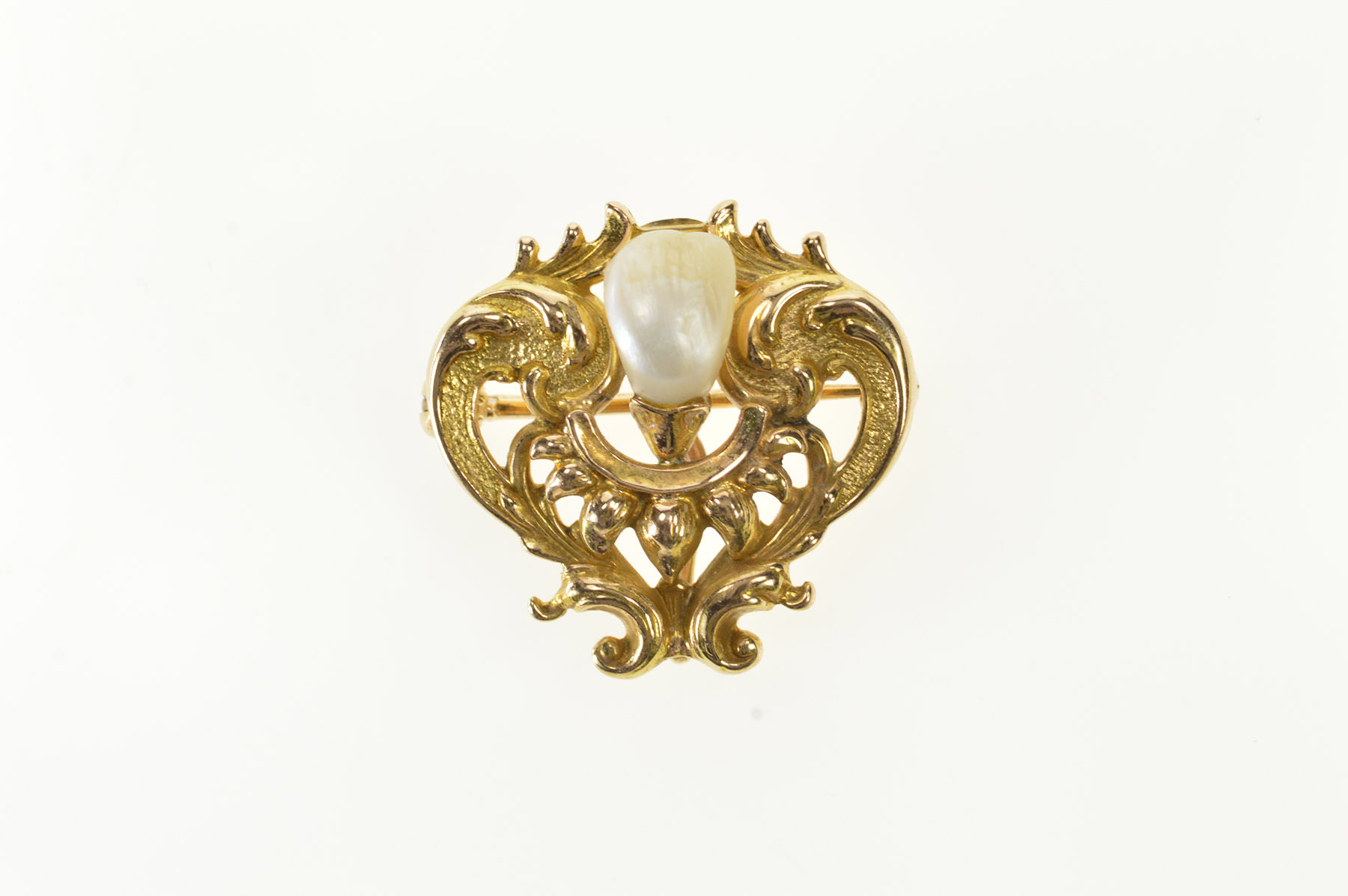 14k Ornate Victorian Scrollwork Blister Pearl Yellow Gold Pendant Pin Property Room